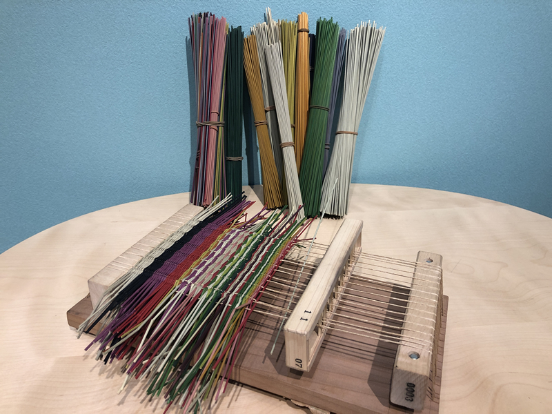 - 体験内容:カラーのいぐさを手織り機に入れて織りあげます。