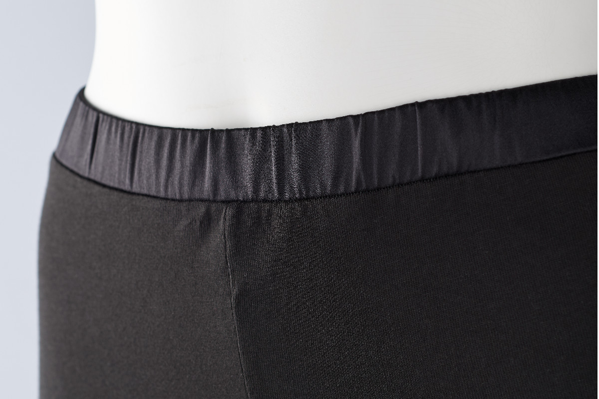 ウエスト部分に天然シルクを配し、異素材のコントラストを楽しめます。