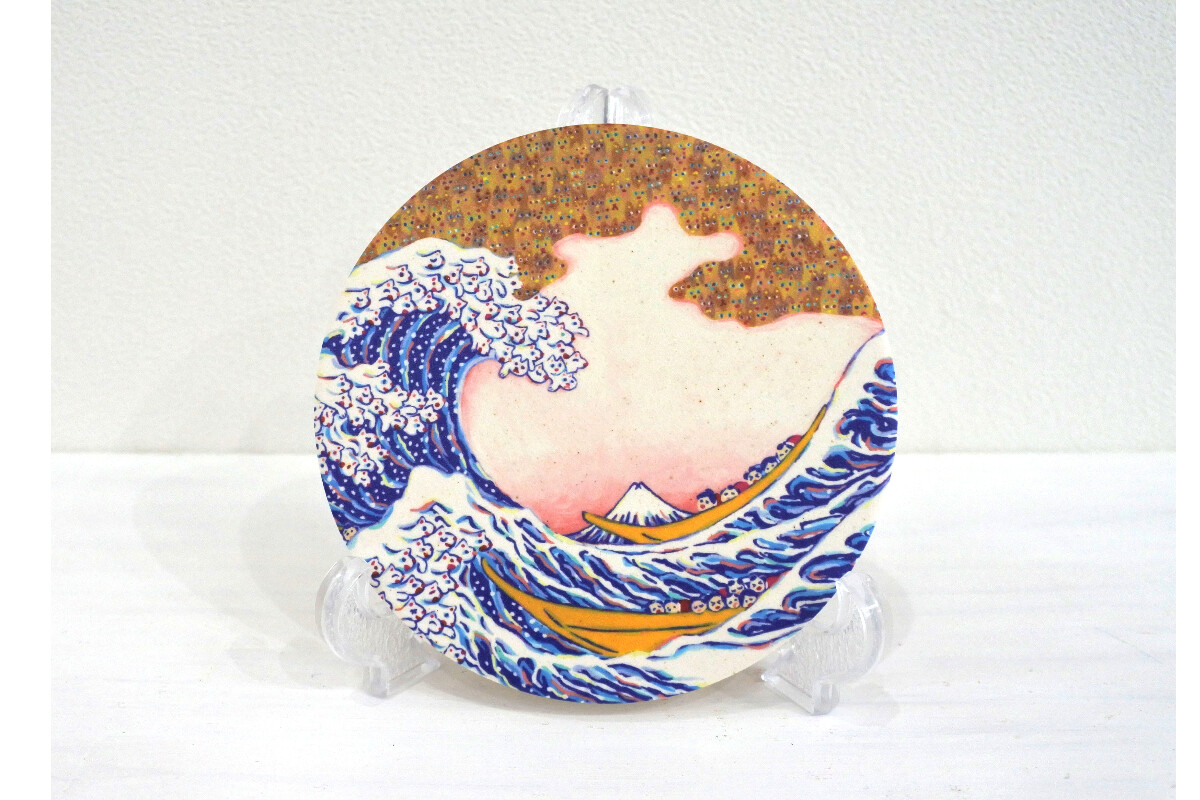 美濃焼コースター 浮世絵 × ねこだらけシリーズ「富嶽三十六景 神奈川沖 猫の浪裏」