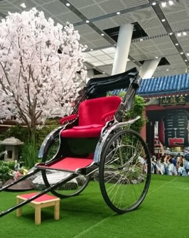 新品人力車の製造販売はもちろんのこと、中古人力車の販売・買取り、修理、レストア(修復・修正)、部品販売、メンテナンス、リース、レンタル及び人力車の走行サービスでは全国対応でどこにでも出張いたします。お祭り、パレード、披露宴での演出入場、結婚式での送迎走行、販売促進などイベントで活躍中!